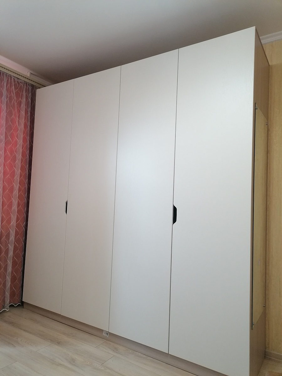 Очень понравился изготовленный шкаф по моим размерам и по выбору материала, крепежа. Все  устраивает, хорошо что есть такие сайты, где можно подобрать самому все удобства, материал и стоимость рассчитать сразу. Консультанты всегда на связи, в случаях, если не понятен цвет и т.п давали консультации.  Сборщики активны быстро собирают.Единственный минус в интеграционной ручке во 2 секция при открытии дверца попадает на перегородку и цепляешься за неё, что не совсем удобно, но привыкли. Рекомендую заказывать.