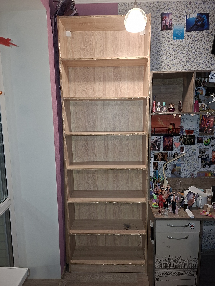 Заказ 00000152312. Заказываю данный стеллаж уже во второй раз. На этот раз решил взять на 6 полок (повыше и пошире). Стеллаж идеально вписался в интерьер. Материал без запаха - даже проветривать не надо было. Качественные материалы и надежная фурнитура. Простая и понятная сборка.Хороший товар с небольшим сроком производства. Наверное, лучшее предложение на рынке по соотношению цена-качество