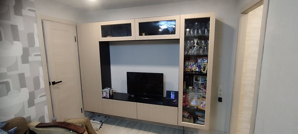 Практичная, удобная, миниатюрная стенка, вписалась очень хорошо. Качество хорошее, правда за такую сумму хотелось получше. Но с нужными размерами сложно было найти. Доставка заняла около месяца.