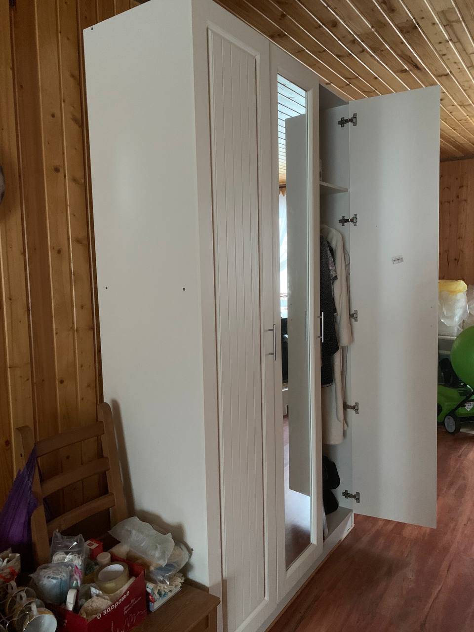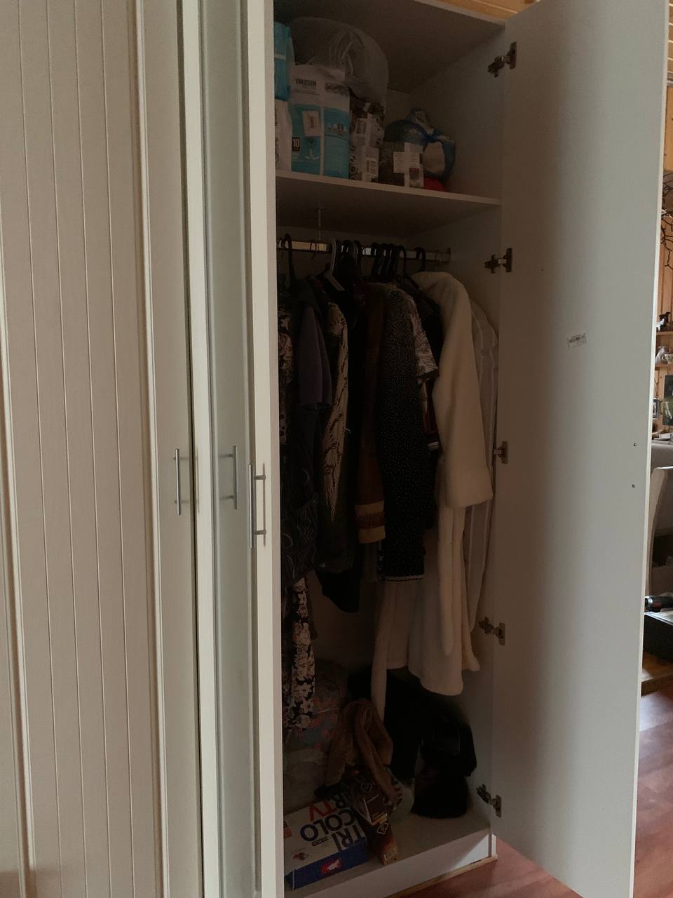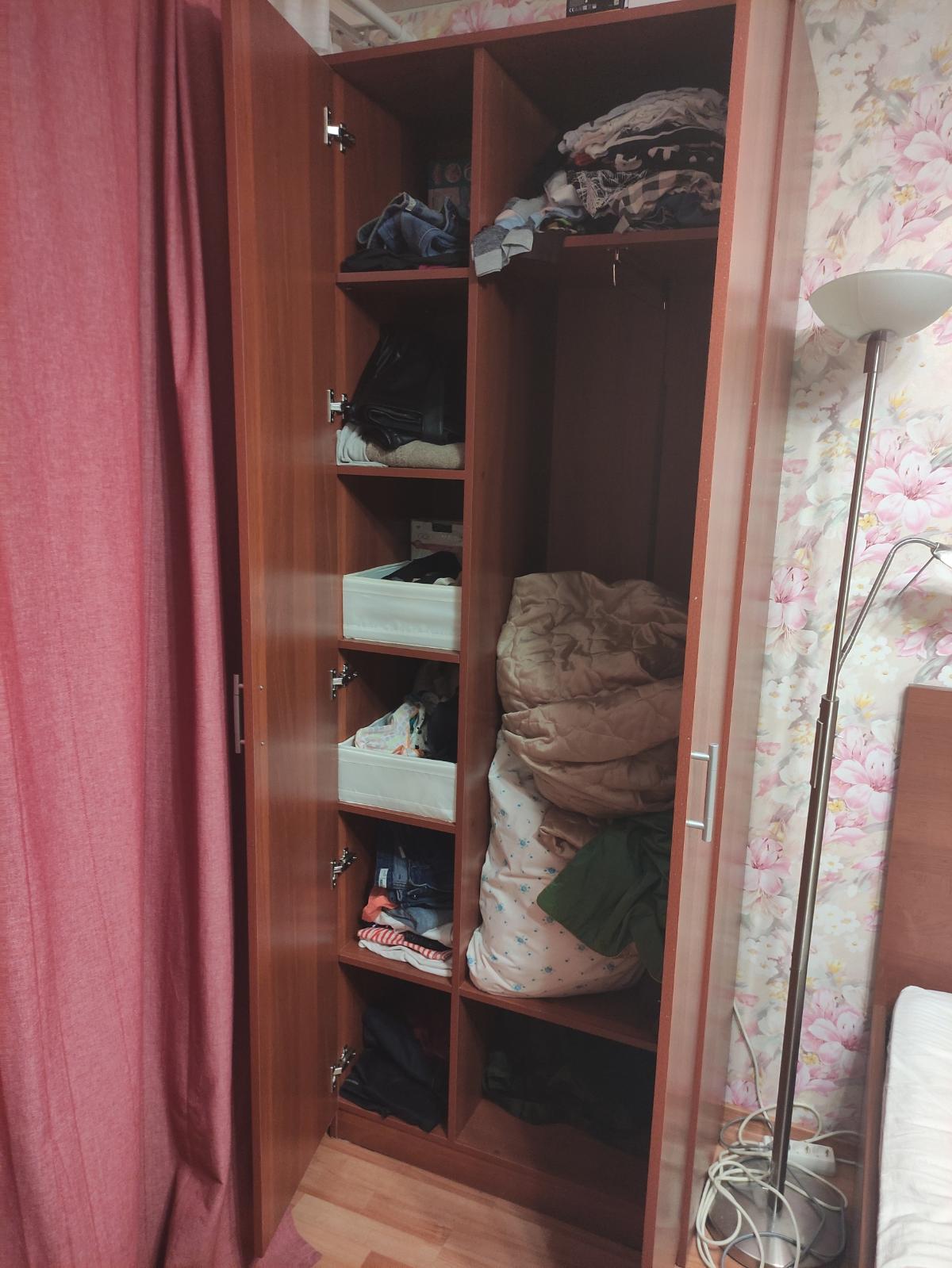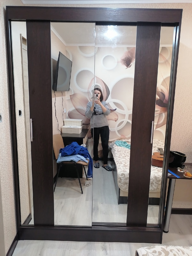 Шкаф удобный, подобрали себе размер , так как комната маленькая, это супер, но замучались собирать, инструкции нормальной нет, хорошо опыт в сборке имеется, собрали и слава богу, большой минус в том,что не были просверлены отверстия под шурупы для верхней направляющей для двери, пришлось измерять и сверлить самостоятельно!!!,а это не просто,если с размерами ошибёшься, то дверь купе не будет открываться легко и еще задняя стенка из двпешки по размеру чуть больше шкафа, что не очень красиво. Муж матерился, но всеже собрали.