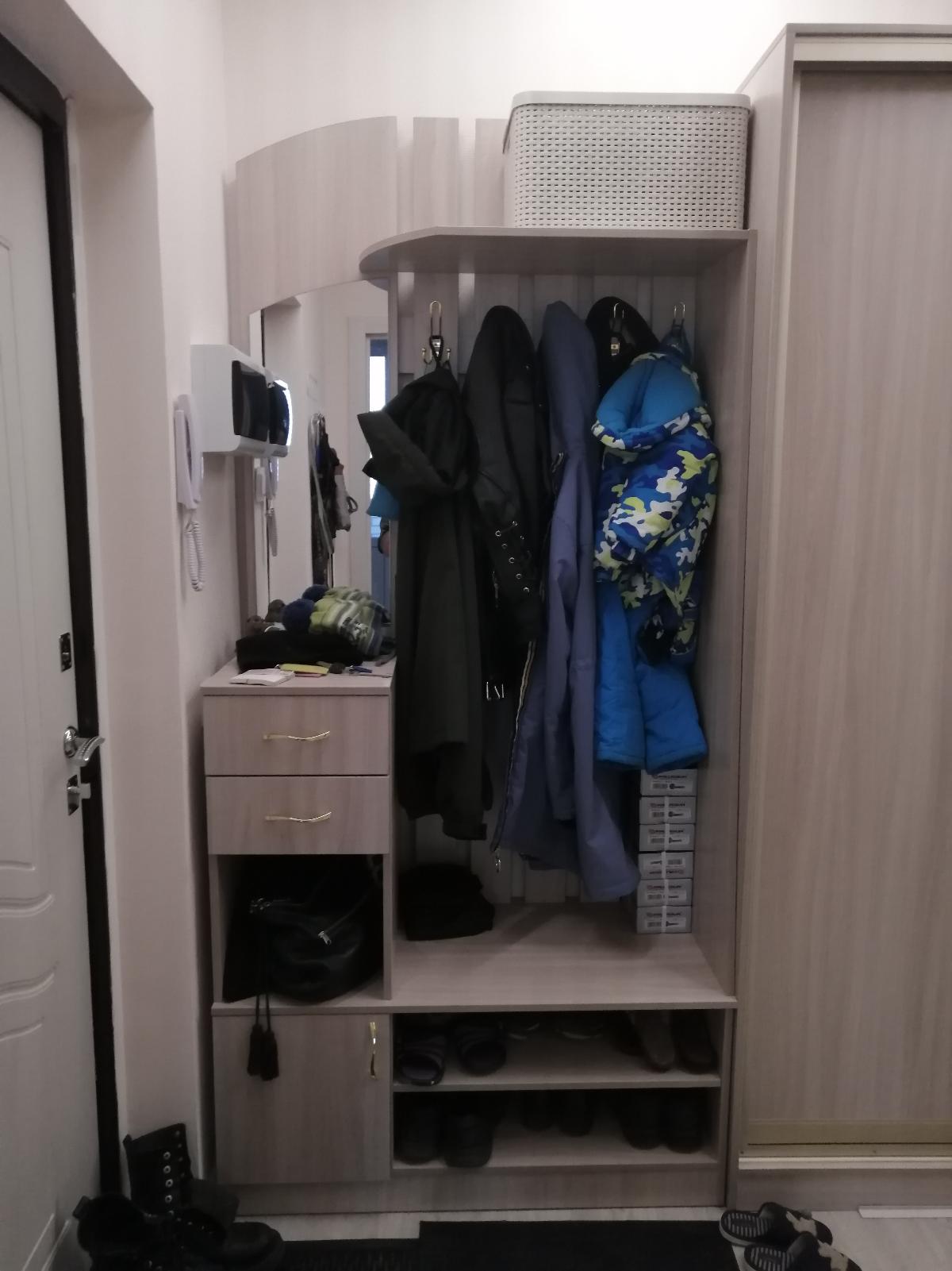 Большой вместительный шкаф. Собрали сами. Вешалки влезли полу боком, иногда рукава дверцами придавливает, но можно подправить, это из-за того, что шкаф не глубокий, 50 см. Инструкция по сборке ужасная, не видно даже чисел и не понятно какой стороной собирать детали. Распечатанные пара листов с сайта и все. С цоколем мы намучались, приходилось методом подбора все прикручивать. Обычно инструкцию по сборке выпускают в виде книжки где нарисован порядок сборки и какие шурупы использовать. И еще нужно много свободного места, ведь низ и каркас шкафа собирается на полу, а потом уже он ставится и дополняется полками, ящиками, задней стенкой, с этим я легко и быстро справилась сама. Направляющие для дверей пришлось сверлить, отверстий не было. Посмотрели как они установлены на другом шкафу и прикрепили так же. В общем я очень довольна покупкой, особенно тем, что можно выбрать цвет и размер, ведь часто приходится собирать комплект мебели. У меня совпала высота, ширина и цвет шкафа и прихожей. Мебель доставляют быстро, все детали подписаны.