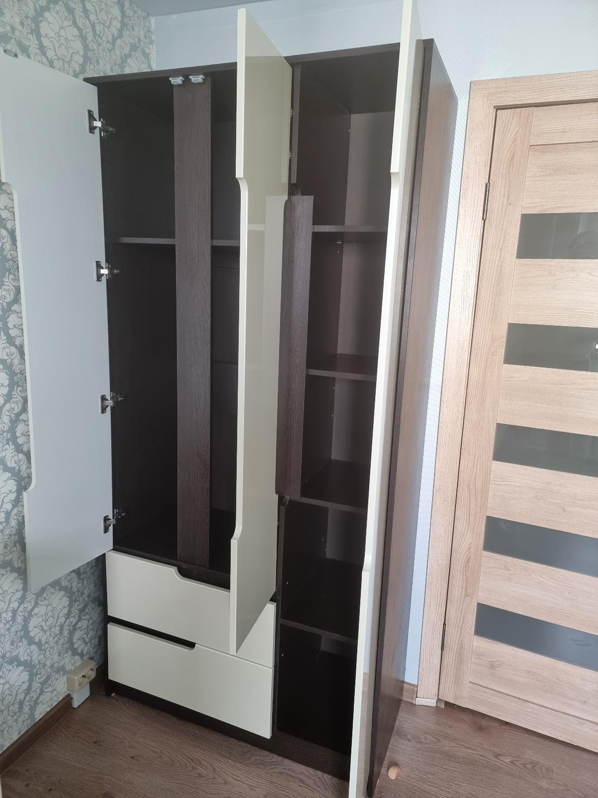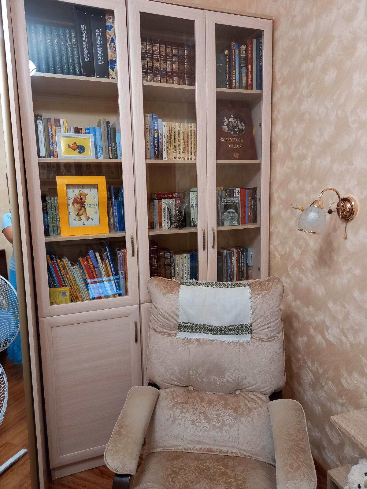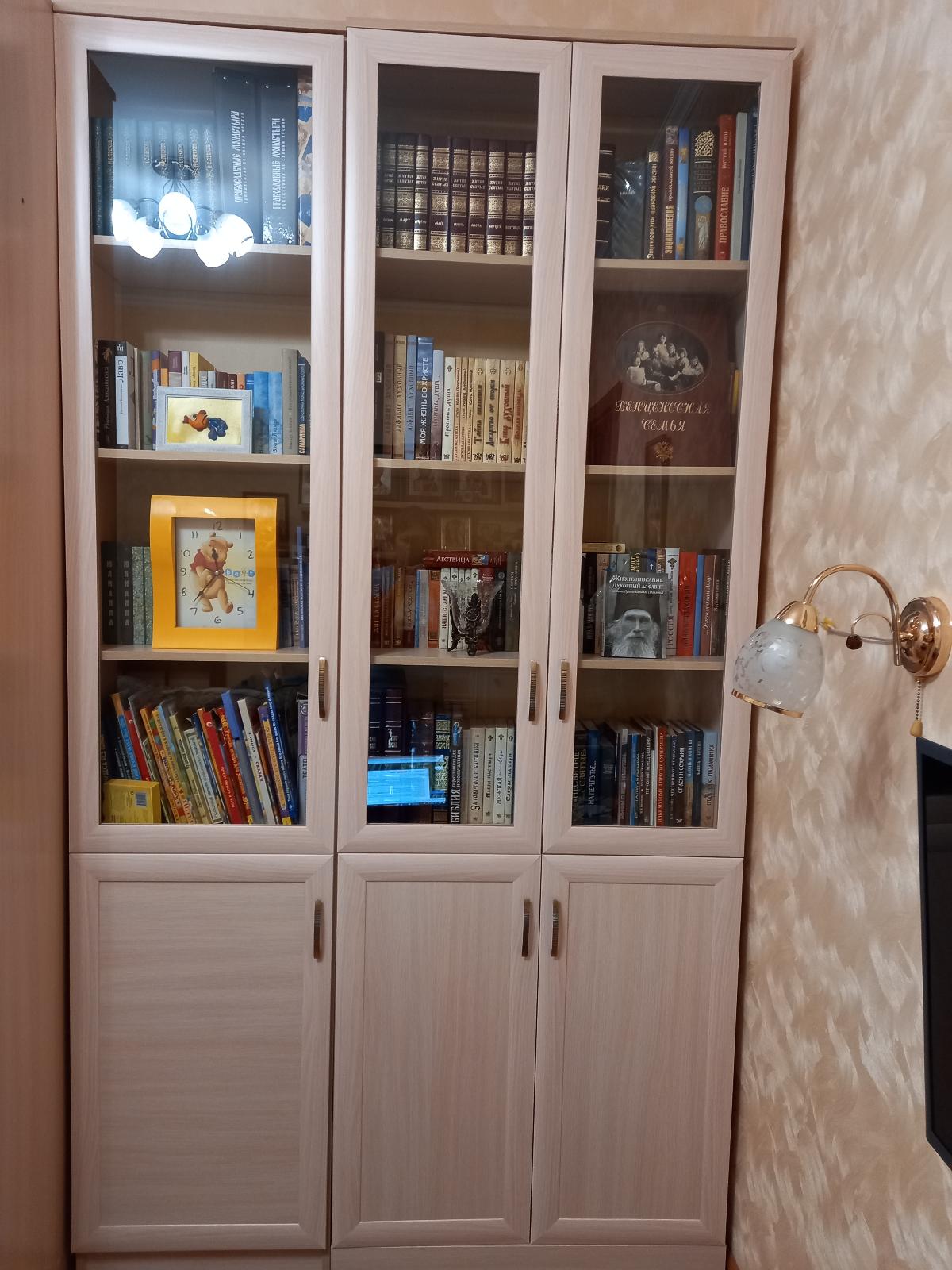 Мне надо было подобрать шкаф точно по размеру ниши, остановилась на варианте 2 шкафа - узкий пенал и двустворчатый. Рядом они встали, как влитые, как одно целое. Очень вместительные, поместились все книги, и внизу большие вместительные шкафы. Очень довольна. Собрали своими силами, все просто. Правда, ручки цвета бронза покупала отдельно, на сайте не было тех, что мне надо (золотые не подошли к другой мебели в комнате). Отделка шкафов аккуратная, нет ни сколов, ни царапин, ни косых углов. Библиотека украсила комнату, очень стало уютно. Это не первая мебель, купленная мною на Бестмебельшоп, и каждой покупкой я довольна! И цены радуют, и качество. Рекомендую!