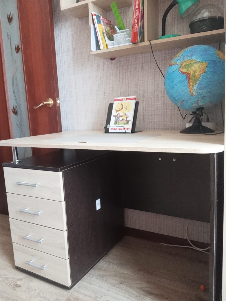 Искали стол для второклашки, смотрели много вариантов. Этот стол понравился больше всех: размер, функционал, дизайн - всё понравилось. Изготовили очень быстро, привезли оперативно. От сборки отказались и правильно сделали - муж собрал без проблем. Стол отлично вписался в интерьер, качество всех комплектующих отличное. Спасибо производителю, всем рекомендую!