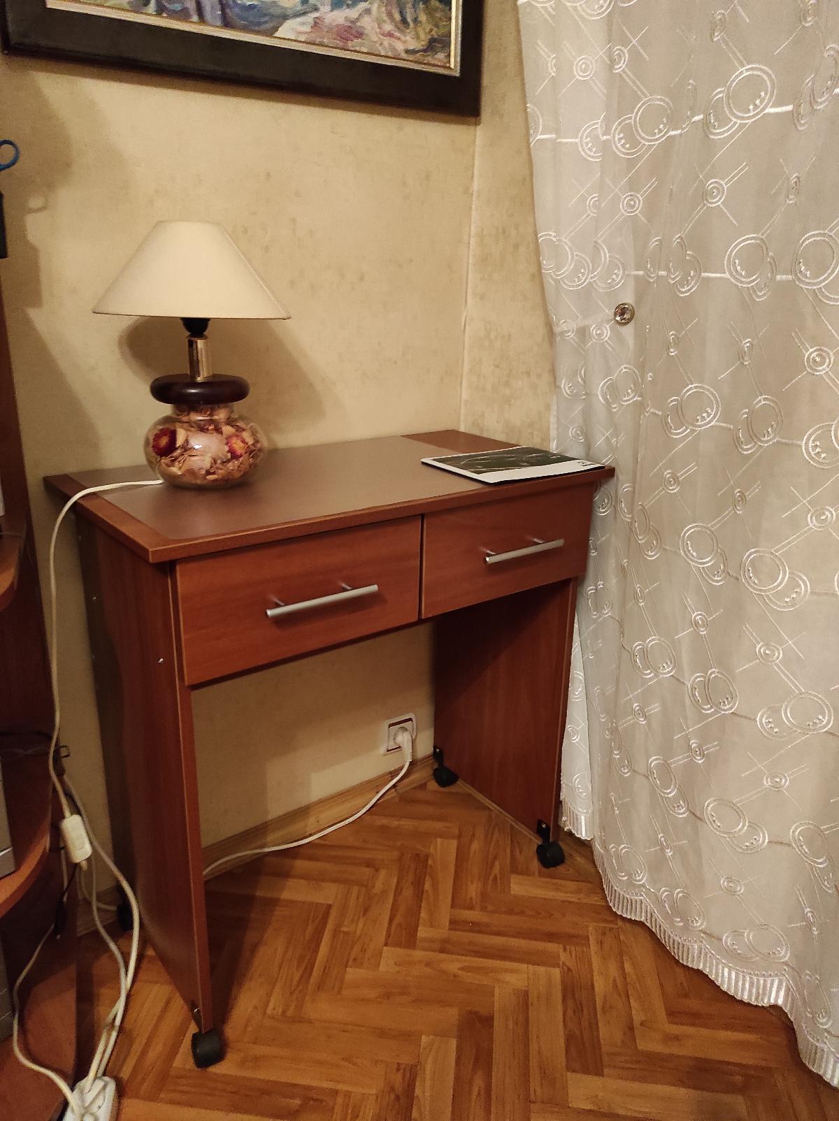 В прошлом году во время пандемии мне срочно понадобился письменный стол. Искала компактный, и чтобы по цвету подходил к основной мебели. Этот стол идеально подходил по размерам, но мне нужны были не полки, а ящики. Об этом я написала в комментариях к заказу. Со мной связался менеджер, с которым мы обговорили все нюансы. Стол получился маленький, компактный, с ящиками, как я хотела. Когда заказывала, очень смущали ролики. Но оказалось, что они очень удобны в эксплуатации.