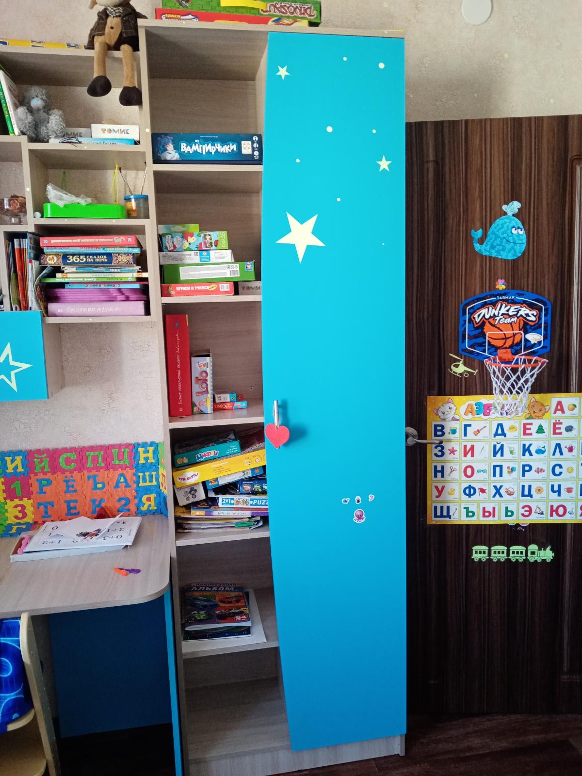 Нужна была мебель в детскую, стеллаж Ника 413,прекрасно вписался в интерьер комнаты, делали по нашим размерам, заказ (00000531370),размеры (700*2173*388),что мне нравиться в этой фирме, что все можно сделать по твоим размерам, и доставка в течении всего 2-х недель, всё здорово, молодцы!