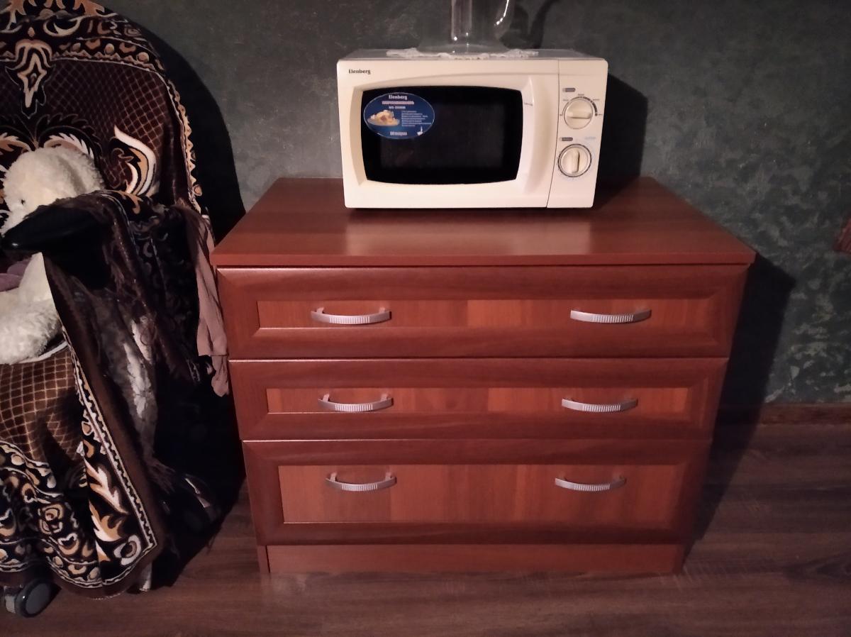 Достоинства:   цена, качествоНедостатки:   нетПокупать не планировали. Увидели на  витрине  (Румянцево). Понравился. И ещё понравилась задняя стенка. Это была как перегородка между мебелью. Заказали. Был приятно удивлен, когда пришёл комод и планка дополнительная,! была уже с засверленными отверстиями. Комод хороший, качество материала, как у других производителей. Но цена совершенно другая. Со сборкой проблем не было. Немного посидели над схемкой, но так как все детали пронумерованы, то особого труда это не составило. А. Заказ выполнен вовремя, без задержек. Забирали самовывозом. Так что, всё устроило.  Всё на высоте.